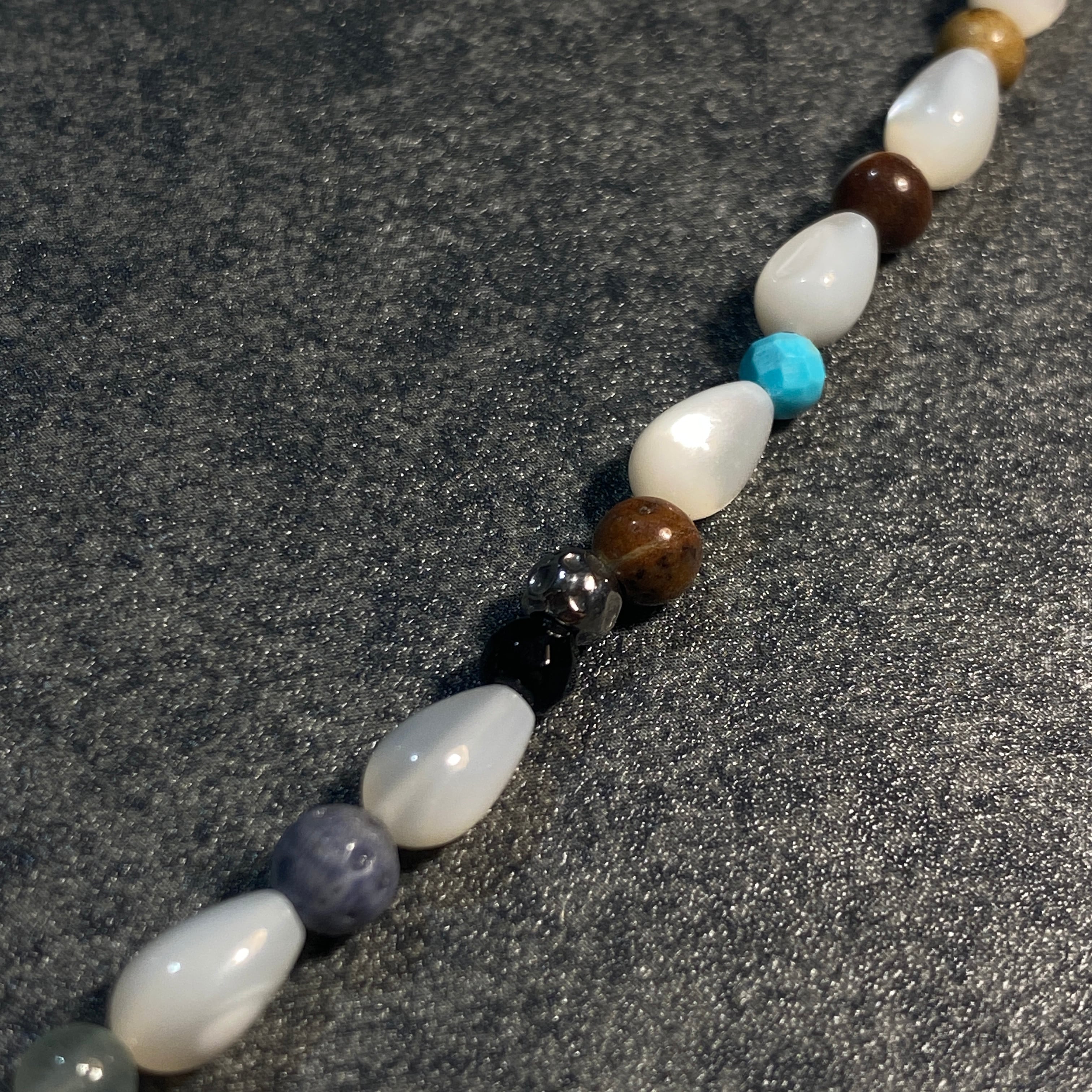 天然シェルとストーンをミックスした、フルビーズタイプ。