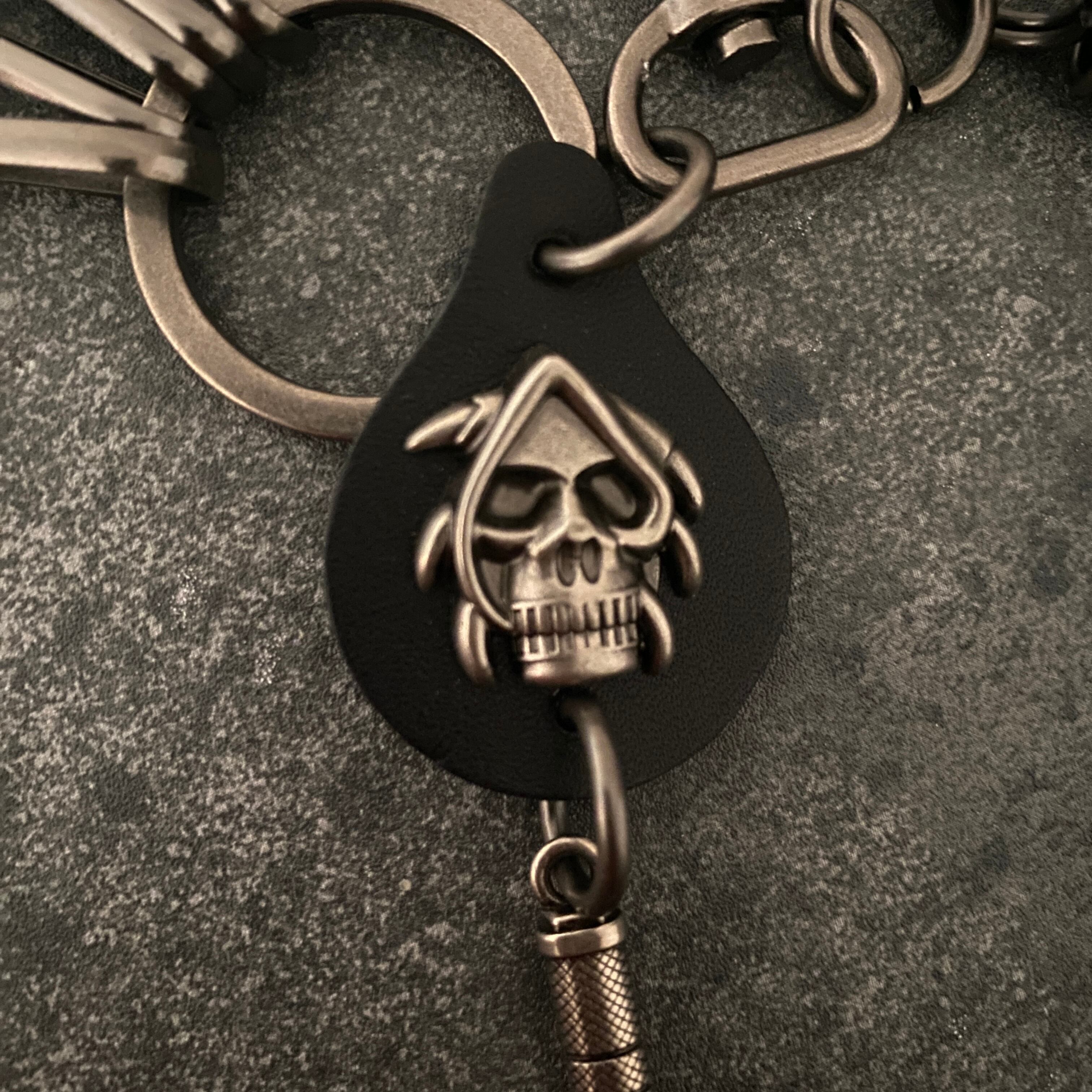 スカルとナイフのチャームがアクセントのウォレットチェーン。