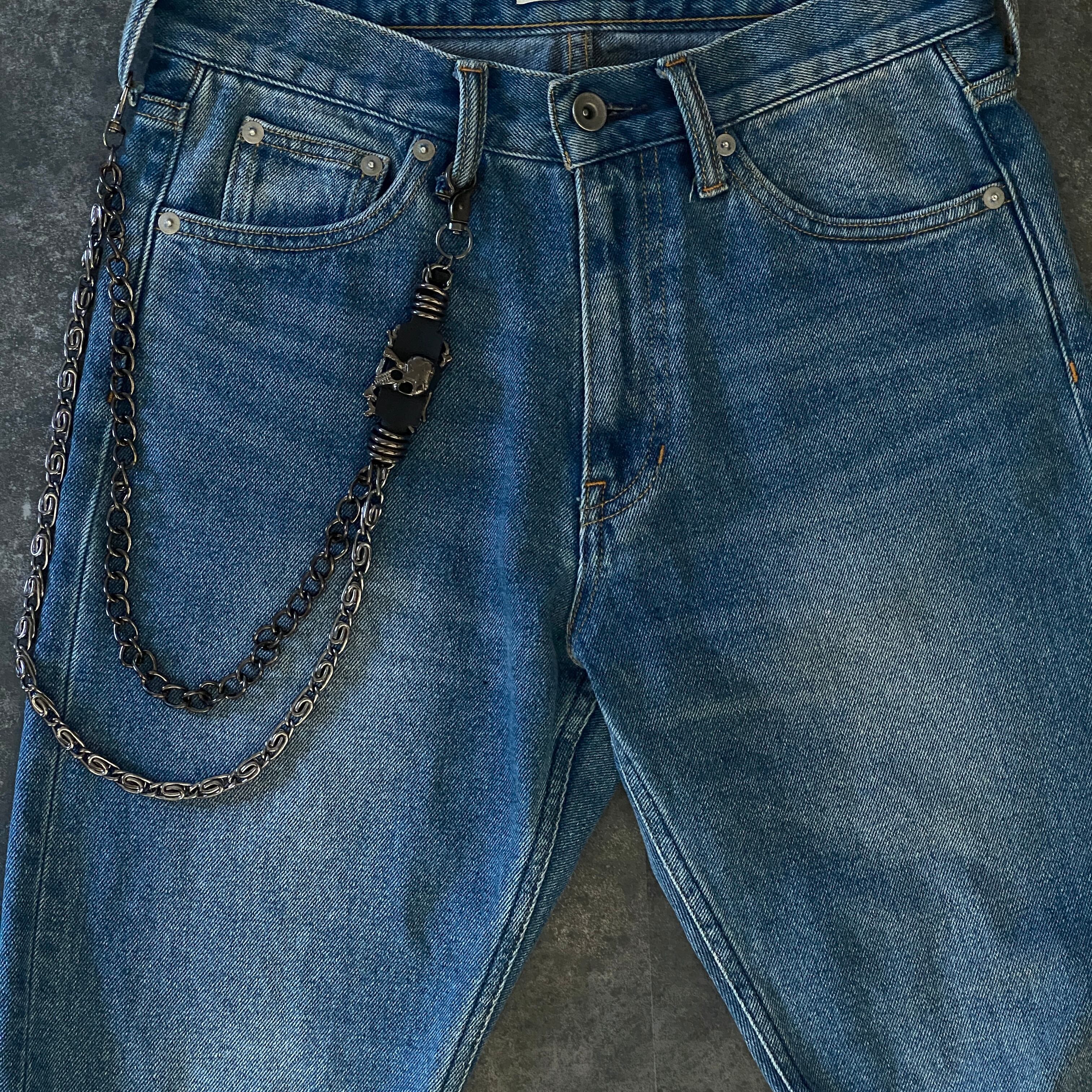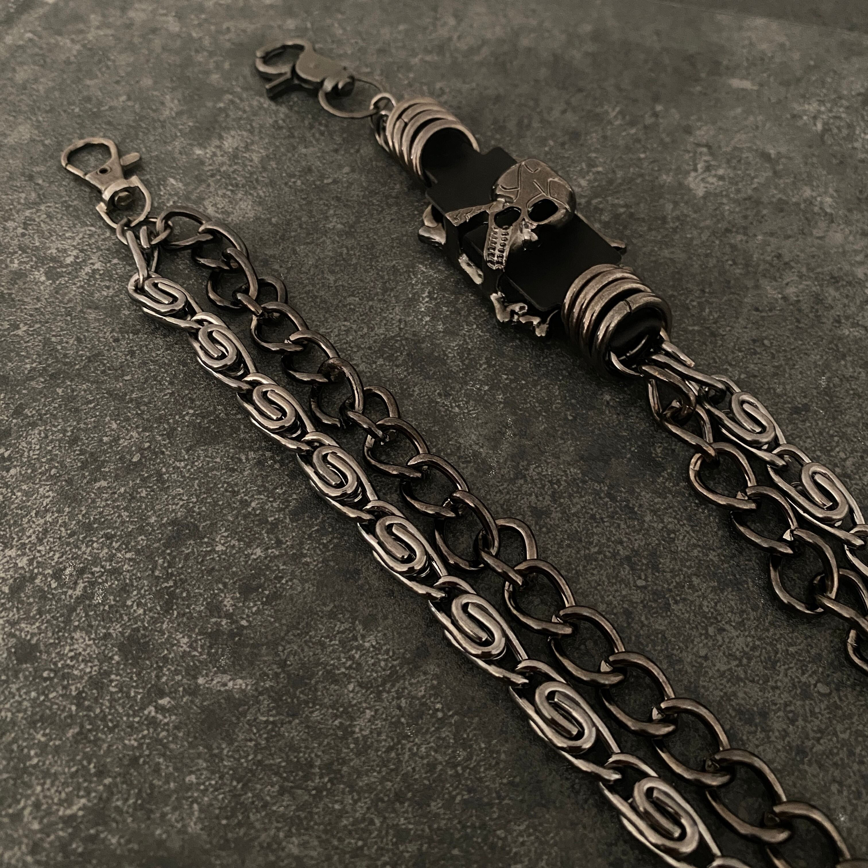 太めのカーブチェーンとレザーループを組み合わせたウォレットチェーン。