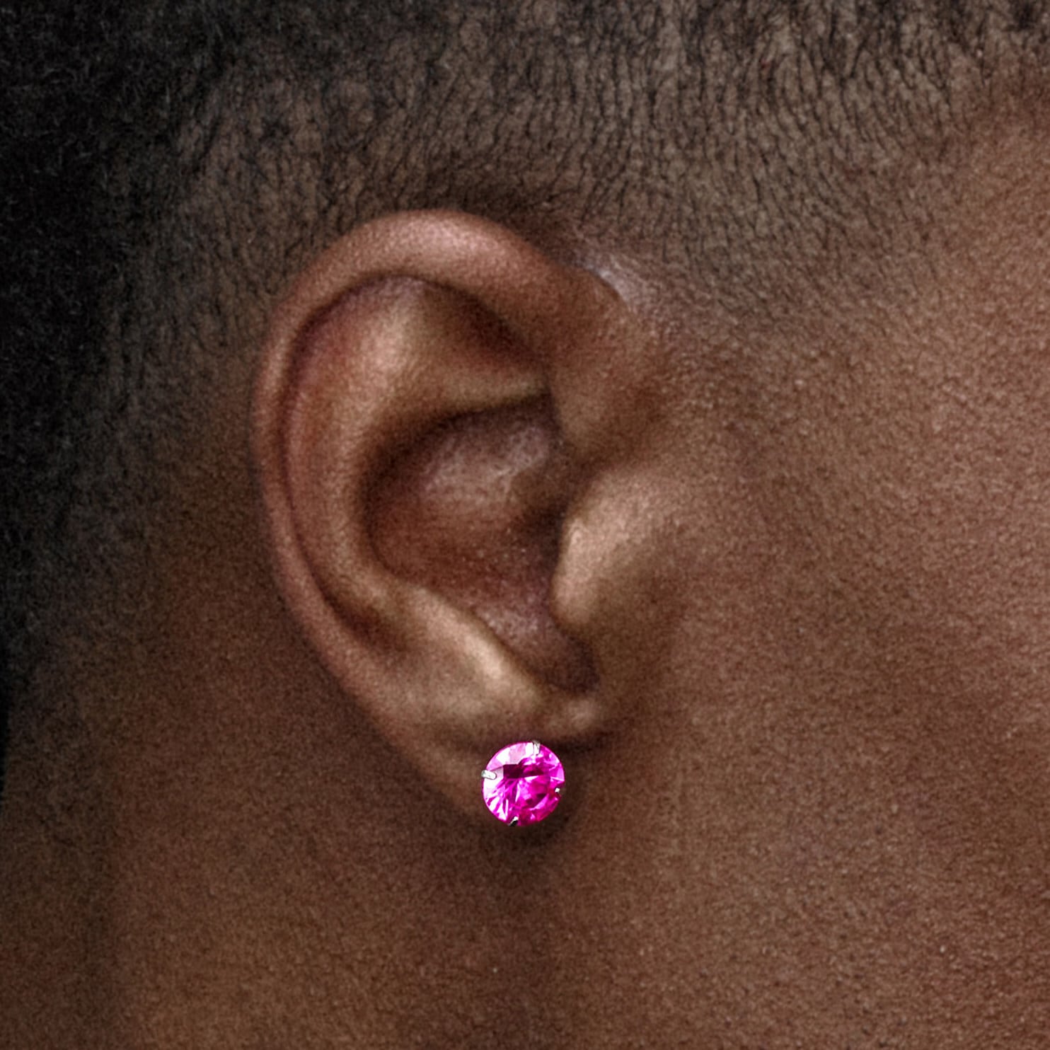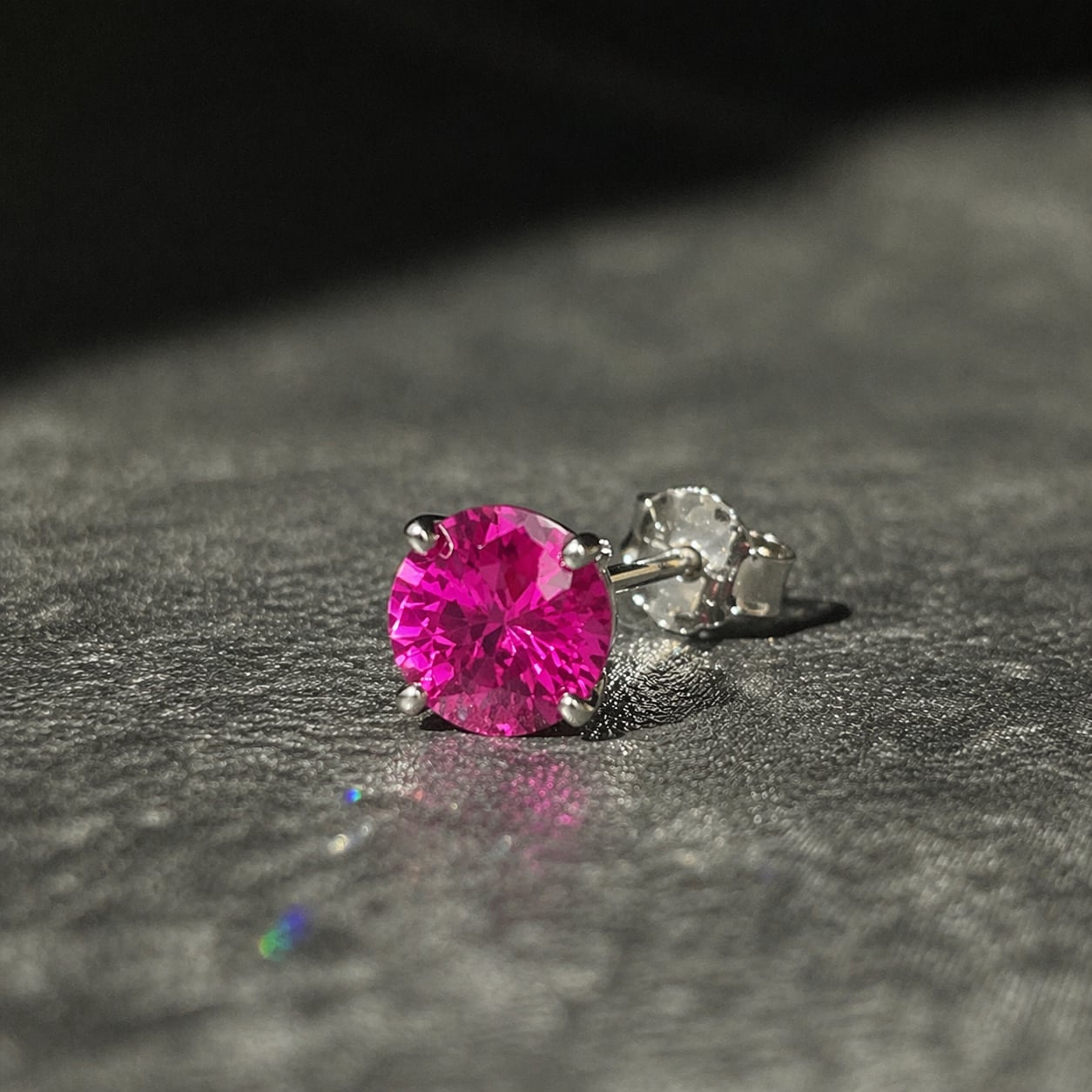 鮮やかなピンクストーンがユニークに輝き、耳元のスタイルにさりげないアクセントを足せるミニスタッドピアス。